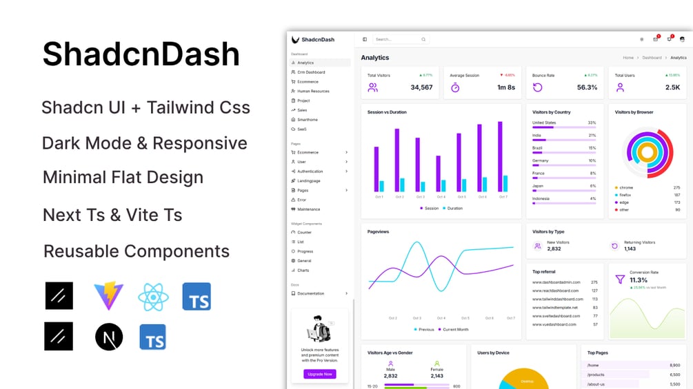 ShadcnDash is a modern, minimal, and responsive dashboard template built with Shadcn UI, Tailwind CSS, and TypeScript. Designed for developers who need a lightweight, fast, and customizable admin panel, ShadcnDash saves you time and effort by providing prebuilt dashboards and reusable components.